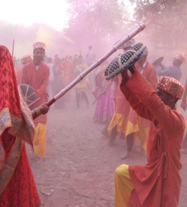 श्री कृष्णा जन्मभूमि की विश्व प्रसिद्ध लठामार होली बहुत ही धूमधाम, भव्यता के साथ में अभूतपूर्व आयोजन रंगभरी एकादषी (10 मार्च 2025) सोमवार को हुआ। केशव वाटिका के पवित्र लीलामंच पर फाग महोत्सव में गाये जाने वाले लोकगीत, भजन, रसिया, छन्द आदि का बहुत ही दिव्य प्रस्तुतीकरण किया गया। सुप्रसिद्ध लठामार होली कार्यक्रम का समापन जन्मस्थान प्रांगण में फूलों की होली के मध्य रसिया गायन एवं लठ और ढाल के साथ परस्पर होली खेलते रावल गांव एवं श्रीकृश्ण संकीर्तन मण्डल के हुरियारे-हुरियारिनों को देखकर प्रिया-प्रियतम की प्रिय होली लीला सजीव एवं साकार हो उठी। इस अवसर विषिश्ट रूप से सुगन्धित द्रव्य, पुश्पार्क एवं वनस्पति रंग का छिड़काव भी श्रद्धालुओं पर किया गया।
