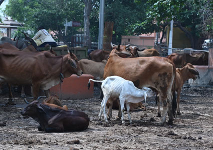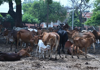 The Sansthan has taken a pledge to take care of shelter less/abandoned cows and bulls whose owners have abandoned them due to their old age, disease or injury. Therefore, the Sansthan has an ongoing programme for treatment of the old and diseased cows and bulls, as well as the facility to provide the traditional Antim Sanskar and burial to these humble creatures. In the past, bovine carcasses were either floated off down the river Yamuna by the caring devotees, or were skinned by unscrupulous people who would then throw the rest of the body without a burial. Therefore, this noble initiative of the Sansthan not only is an expression of its dedication towards caring of cows, but also its concern for the environment.